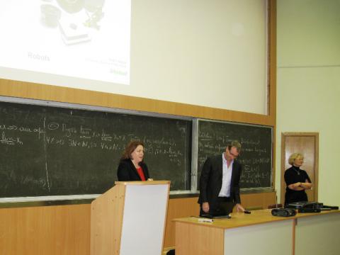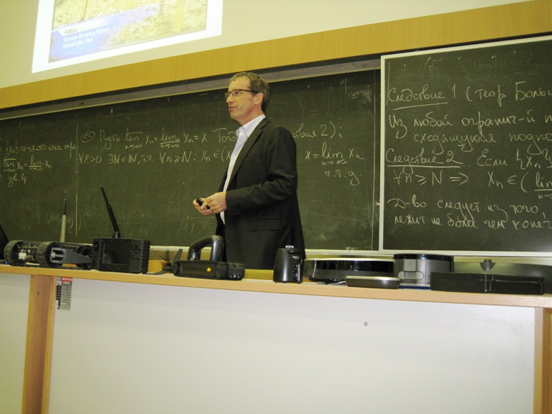 25 сентября 2012 г. в ауд. П-6 состоялась лекция Колина Энгла "Robots that matter". Колин Энгл является генеральным директором корпорации iRobot. На лекции присутствовали представители iRobot Erika Angle, Nancy Dussault-Smith, A. Grochowski, S. Radcka, J. Milewski и др. Подробнее см. постер лекции и фотогалерею.