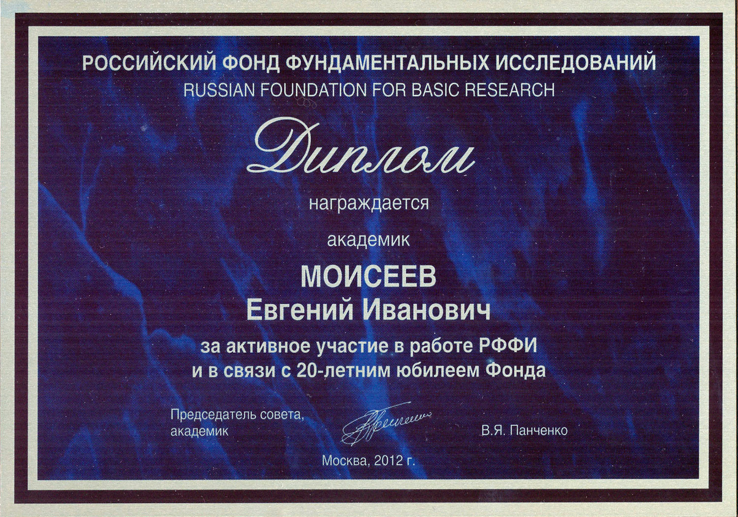 В связи с юбилеем за активное участие в работе РФФИ дипломом фонда награжден декан факультета вычислительной математики и кибернетики академик Евгений Иванович Моисеев.