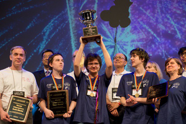 19 апреля в Пекине прошёл финал Международной олимпиады по программированию ACM ICPC. Студенты МГУ имени М.В.Ломоносова Михаил Михайлович Ипатов (3 курс механико-математического факультета), Григорий Михайлович Резников (2 курс факультета вычислительной математики и кибернетики) и Владислав Владиcлавович Макеев (2 курс факультета вычислительной математики и кибернетики) под руководством тренера Елены Владимировны Андреевой (заведующая кафедрой информатики СУНЦ МГУ) завоевали абсолютное первое место! Это первый подобный успех команды Московского университета.