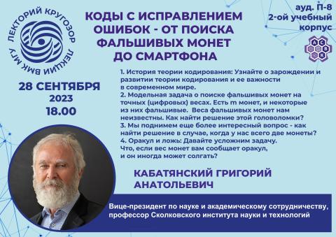 Лектор – Кабатянский Григорий Анатольевич, вице-президент по науке и академическому сотрудничеству, профессор Сколковского института науки и технологий.