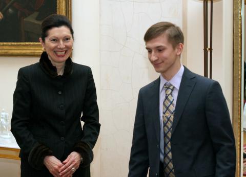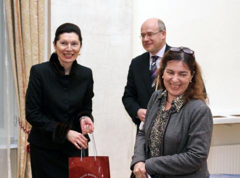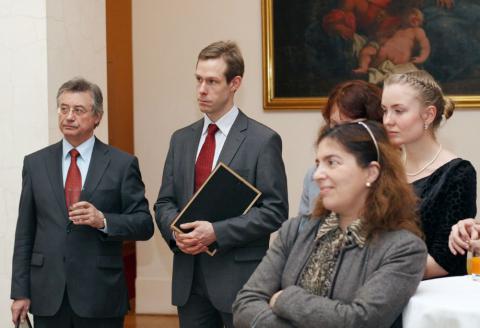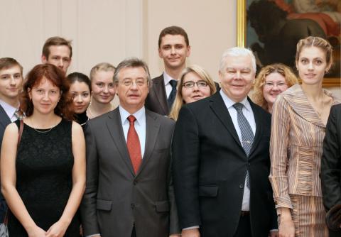 29 января 2013 г. посол Австрии в России доктор Маргот Клестиль-Лёффлер дала прием по случаю успешного завершения курса лекций "Австрия: история, политика, экономика и перспективы в ЕС". Курс лекций читался на немецком языке в осеннем семестре 2012 г. силами лекторов из Австрии в рамках Альпийского Клуба МГУ при поддержке факультета ВМК МГУ и Русско-германского института МГУ. По результатам курса четверо студентов МГУ, набравших наибольшие баллы, получили памятные сувениры об Австрии. Поздравляем студентов и аспирантов МГУ