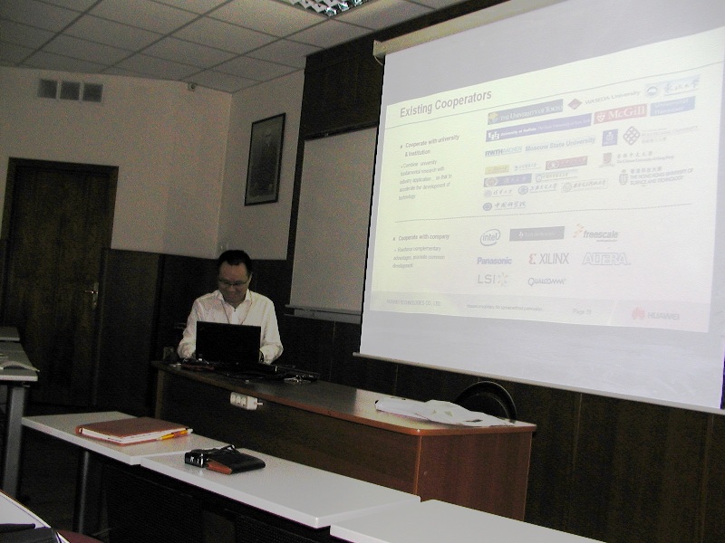 С лекцией "Huawey: department, business and university cooperation" выступил представитель фирмы Wang, Weiqin (Director of Media Engineering Development Department).