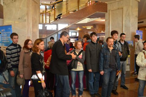 В течение всех дней работы фестиваля выставочный стенд факультета ВМК в Фундаментальной библиотеке пользовался таким успехом, что работавшие там ребята к концу третьего дня начали терять голос, рассказывая об алгоритмах обработки трехмерных изображений и 3D-видео, технологии считывания контура ладони с помощью WEB-камеры бесконтактным способом, примерах решения современных транспортных задач при помощи суперкомпьютеров, интерактивном управлении роботами. Был представлен на выставке и оригинальный проект «Хронозум». «Хронозум» — это новый способ визуализировать время онлайн, который позволяет с помощью масштабирования изображения просмотреть миллиарды лет нашей истории. Во временной ленте «Хронозума» появились записи и от посетителей стенда факультета.