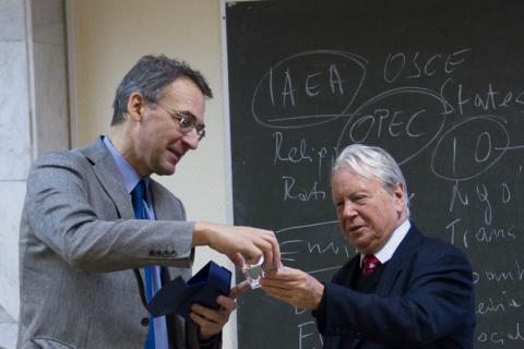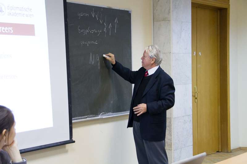 Во вторник 3 декабря 2013 г. 18:30 в аудитории П-8a 2-го учебного корпуса МГУ (Ленинские Горы 1-52, 2 этаж, северный вход) в рамках Альпийского Клуба МГУ состоялась лекция директора дипломатической академии Вены доктора Ханса Винклера: