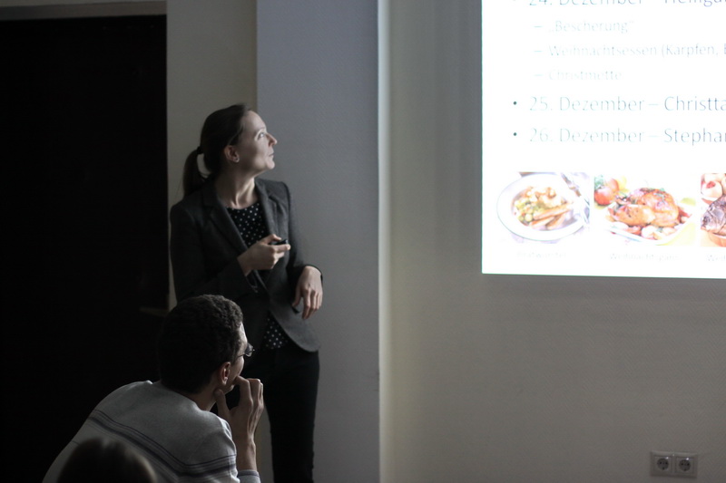 Во второй части вечера студенты познакомились с традициями встречи Рождества и Нового Года в Австрии, спели традиционные австрийские рождественские песни, попробовали национальные кондитерские изделия. Запоминающийся вечер стал возможен благодаря организационной поддержке и неформальному участию наших австрийских партнеров: