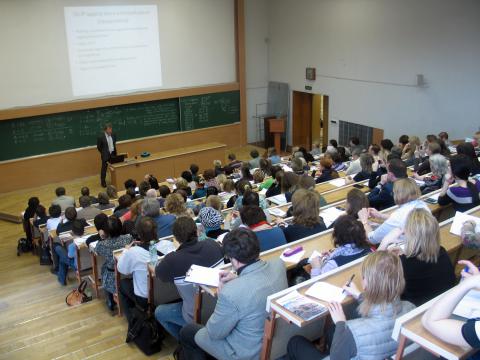 10 апреля в рамках программы «МГУ–школе» на факультете вычислительной математики и кибернетики МГУ состоялся семинар для учителей информатики, на который собрались более 170 учителей из Москвы и Московской области. Семинар был посвящен сложным вопросам ЕГЭ по информатике: IP-адресация в задачах единого госэкзамена и быстрые способы решения типовых логических уравнений. Докладчиками на семинары были специалисты Московского университета. Кроме того, некоторые учителя подготовили собственных тезисы выступлений. Подробнее о семинаре — на сайте программы «МГУ–школе» http://teacher.msu.ru/teacher/seminar/2014/it-ege