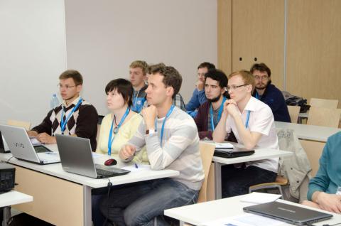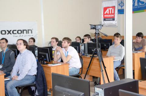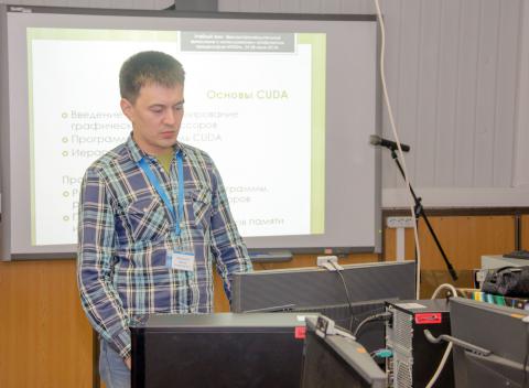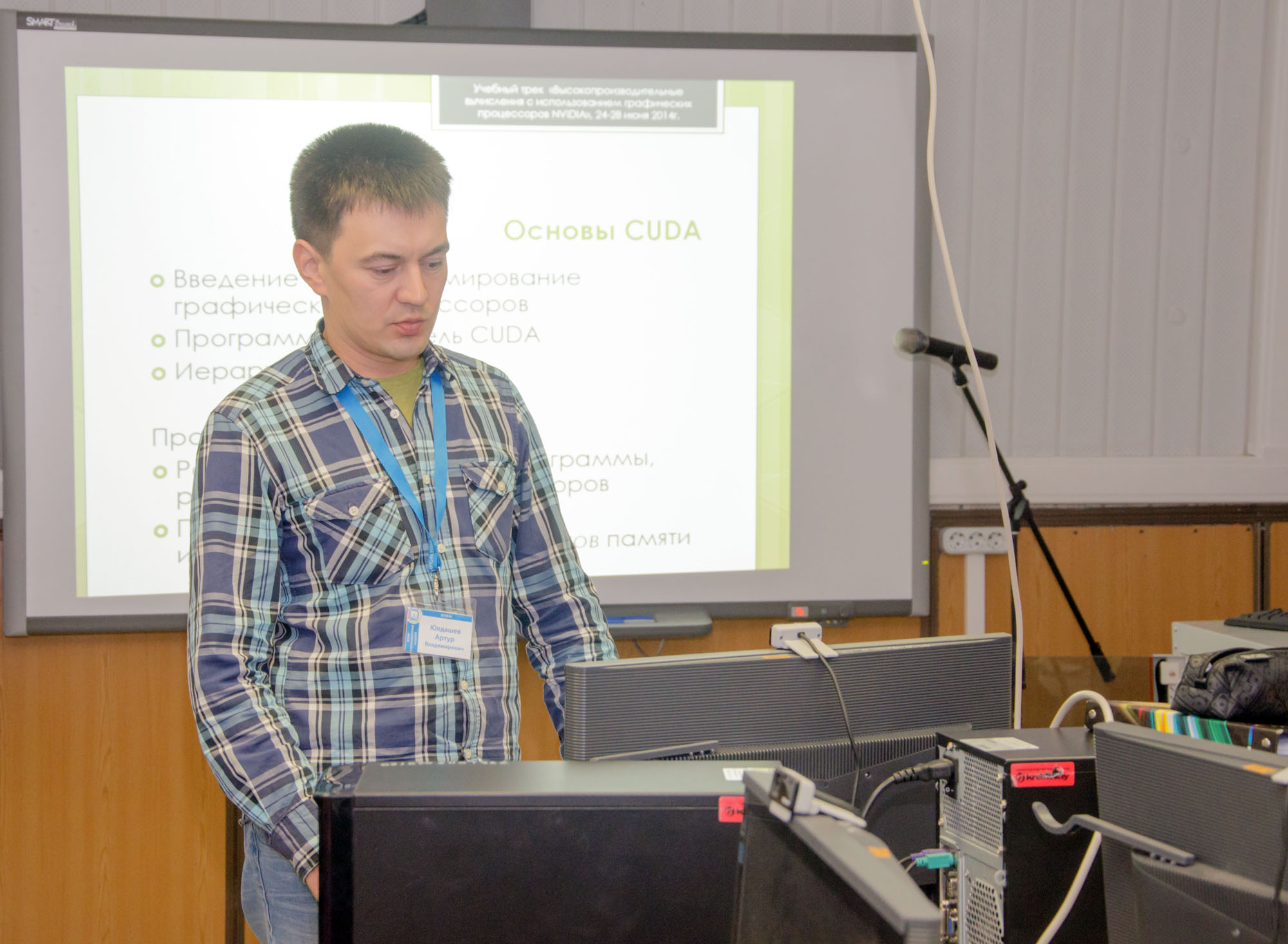 Первый день работы трека начался с вводной лекции о программировании на графических процессорах. Слушатели этого трека – в основном студенты старших курсов и аспиранты разных вузов страны. Лекции ведут слушателей от обязательного списка терминов к описанию современной линейки графических процессоров NVIDIA.