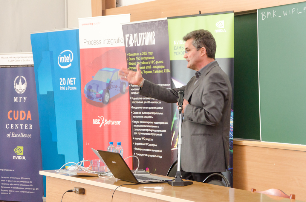 Современные взгляды на адаптацию алгоритмов к суперкомпьютерным вычислениям представил Дэвид Кейс. В своем докладе Дэвид рассмотрел возможности модификации различных известных в науке численных методов к работе с большими объемами данных. Также в первый день работы семинара были заслушаны доклады Ed Seidel (директор Центра суперкомпьютерных приложений США), Mateo Valero (директор Суперкомпьютерного центра Барселоны, Испания) и других широко известных специалистов.