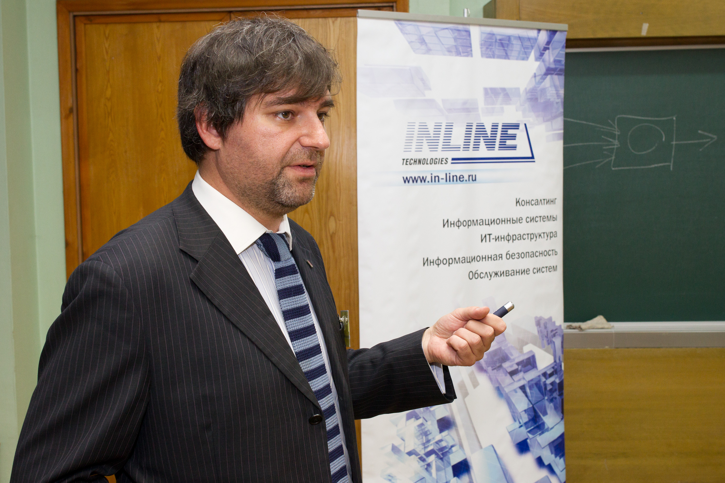 Генеральным партнером мероприятия выступила компания "INLINE Technologies", которая уже не первый год сотрудничает с факультетом. Результатом этого успешного взаимодействия стало появление спецкурсов по выбору для студентов разных лет обучения. В этот раз, для знакомства с передовыми бизнес-технологиями, компания провела мастер-класс "Сервис-провайдеры и сервис-агрегаторы". Лектором выступил руководитель направления ITSM-консалтинга и бизнес-мониторинга зажигательный Тигран Матинян. Поэтому отведенные на рассказ 45 минут незаметно превратились в час, а вопросы заинтересованных студентов продолжали поступать и, если бы не запланированное следующее мероприятие, то диалог мог бы продолжаться еще немало времени, ведь так много хотелось узнать.