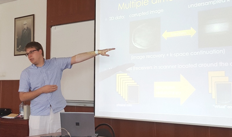 С информацией о факультете и сотрудничестве МГУ-Самсунг в рамках совместной лаборатории выступил доцент Гуляев А.В., с обзорами результатов по текущим проектам выступили профессора Крылов А.С. и Тыртышников Е.Е.