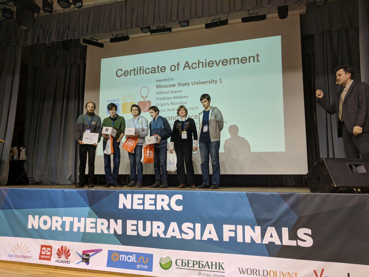 Поздравляем команду МГУ имени М.В.Ломоносова, занявшую 2-е место в полуфинале студенческого чемпионата мира по программированию и вышедшую в финал.