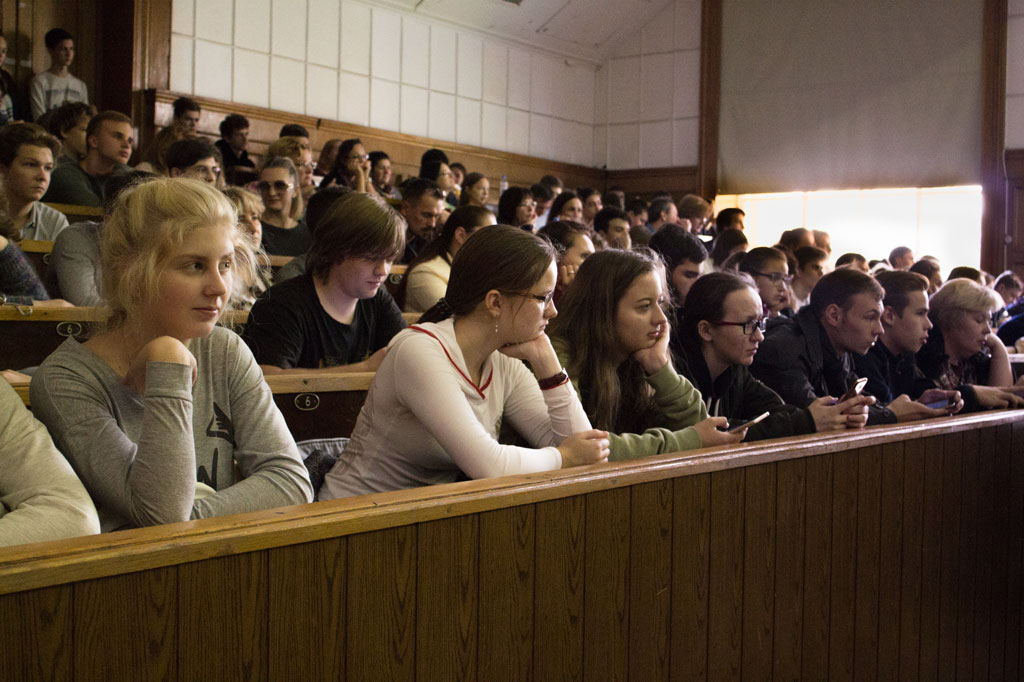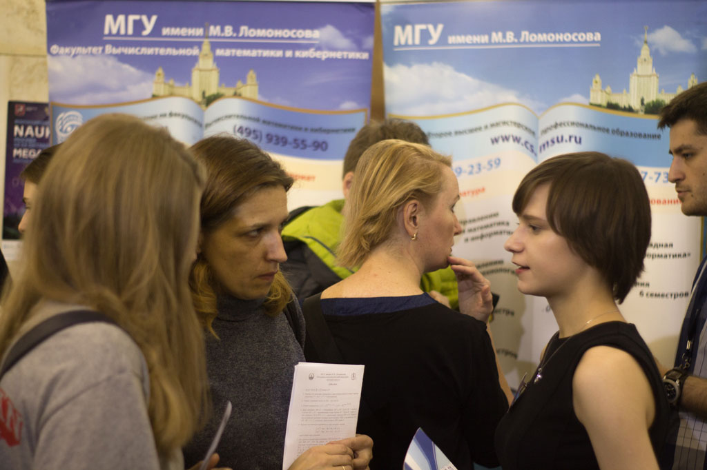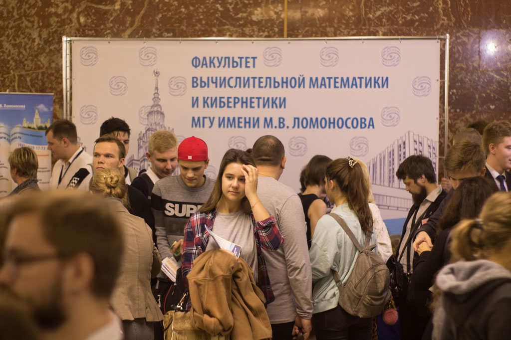 В это воскресенье, 7 октября, прошёл общеуниверситетский День открытых дверей. Факультет ВМК МГУ был представлен на выставке-презентации в фойе Главного здания, где сотрудники и студенты факультета отвечали на вопросы, касающиеся поступления, олимпиад и учебного процесса.