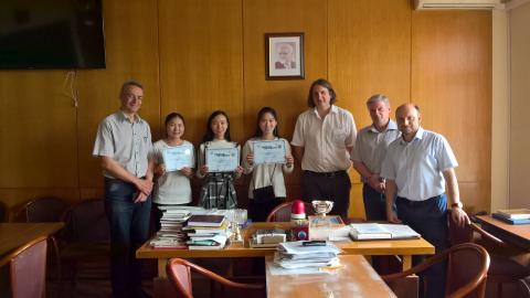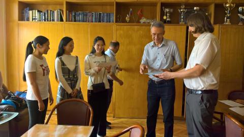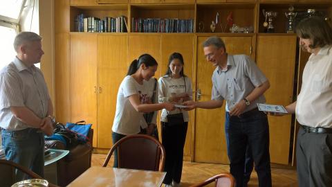 28 мая состоялось вручение сертификатов об успешном окончании стажировки на факультете ВМК студентам магистратуры Университета Дияньзи (КНР). Ли Тон, Сю Мэнюи и Лю Ячжэнь проходили стажировку на кафедре нелинейных динамических систем и процессов управления (НДСиПУ) под научным руководством проф. Фомичёва В.В.,проф. Ильина А.В. и проф. Фурсова А.С