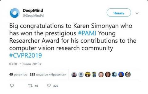 Выпускник факультета вычислительной математики и кибернетики 2009 года Карен Симонян (научный руководитель — Д.С.Ватолин, лаборатория компьютерной графики и мультимедиа) получил Pattern Analysis and Machine Intelligence Young Researcher Award.
