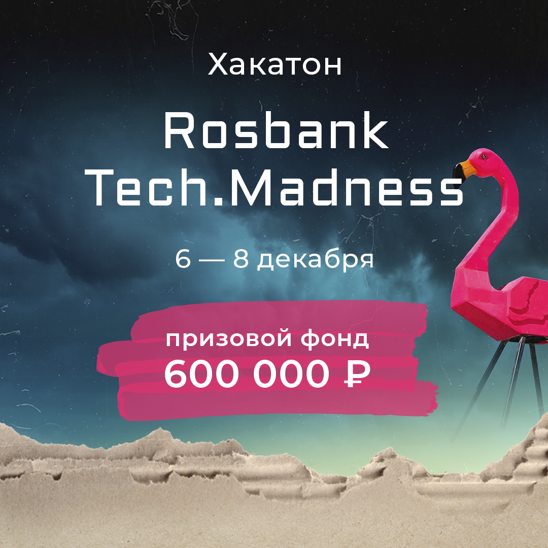 К участию в Rosbank Tech.Madness приглашаются разработчики и аналитики, которые готовы заявить о себе, создать за 45 часов нетривиальные продукты и побороться за главный приз – 300 000 руб. Можешь решить задачу на хакатоне, не зная задание заранее? Rosbank Tech.Madness создан для тебя!