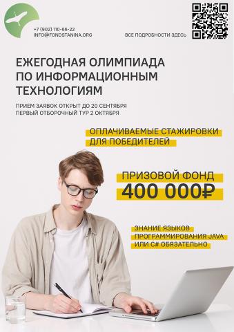 Прием заявок до 20 сентября 2022 года: https://fondstanina.org/olympiad2022