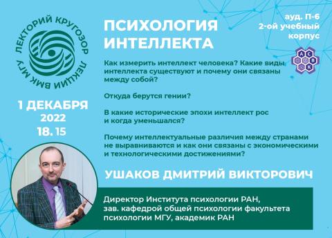 Лектор: Ушаков Дмитрий Викторович - директор Института психологии РАН, зав. кафедрой общей психологии факультета психологии МГУ, академик РАН.