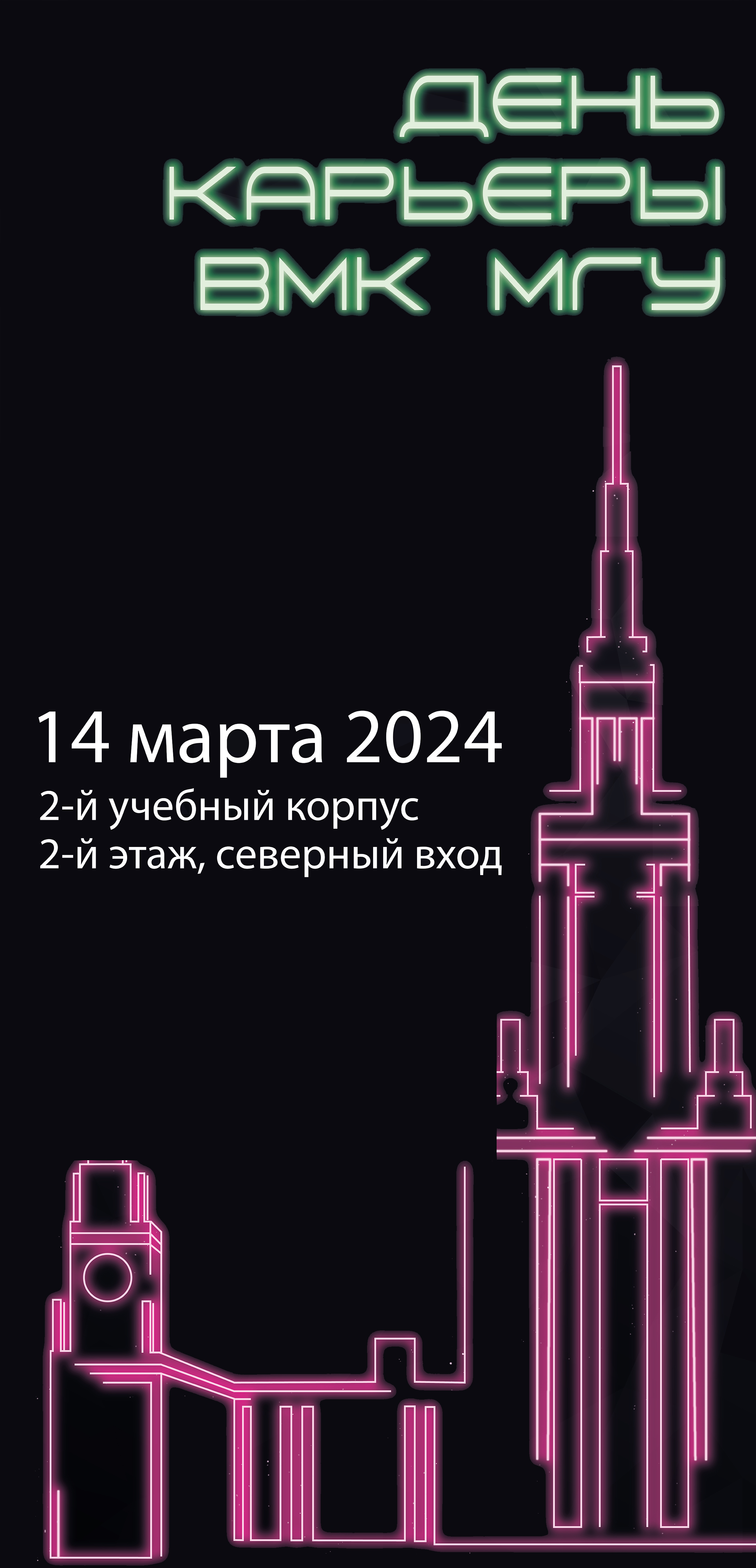 Приглашаем вас принять участие в традиционном Дне Карьеры ВМК МГУ, который состоится 14 марта 2024 года. Мероприятие будет проходить с 12:00 до 16:00 в северном холле 2 этажа 2-го учебного корпуса.
