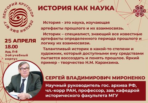 Лекция «История как наука» состоится 25 апреля 2024 г. в 18:00 в ауд. П-8 во втором учебном корпусе.