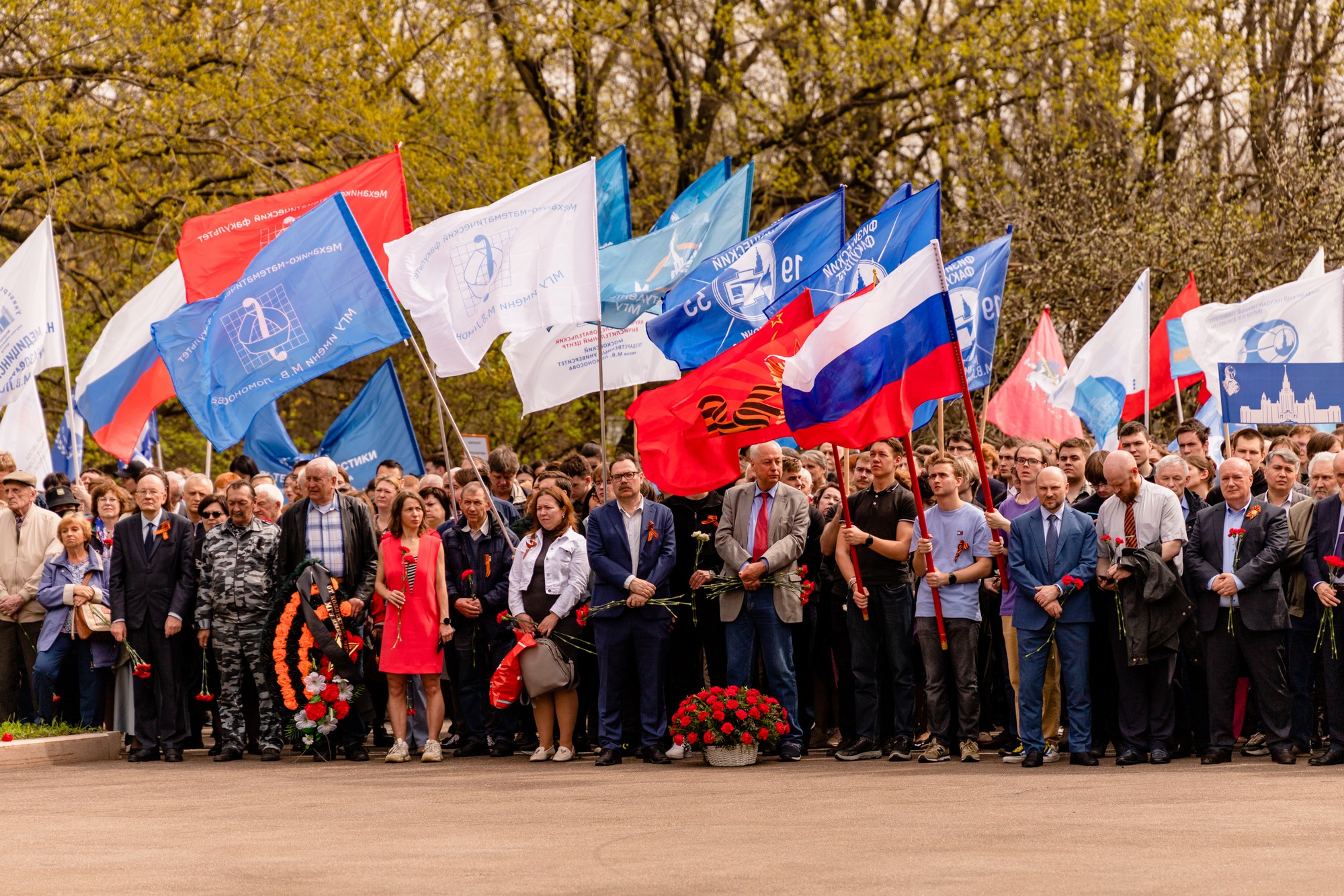 26 апреля факультет вычислительной математики и кибернетики принял участие в митинге у памятника студентам и сотрудникам МГУ, павшим в боях за Родину в Великой Отечественной войне 1941-1945 годов. У трех стел в форме штыков, перед Вечным огнем собрались представители всех поколений – студенты, молодые ученые, заслуженные преподаватели и профессора, деканы факультетов и руководители научных институтов, представители Совета ветеранов, студенческих организаций, Военного учебного центра МГУ.
