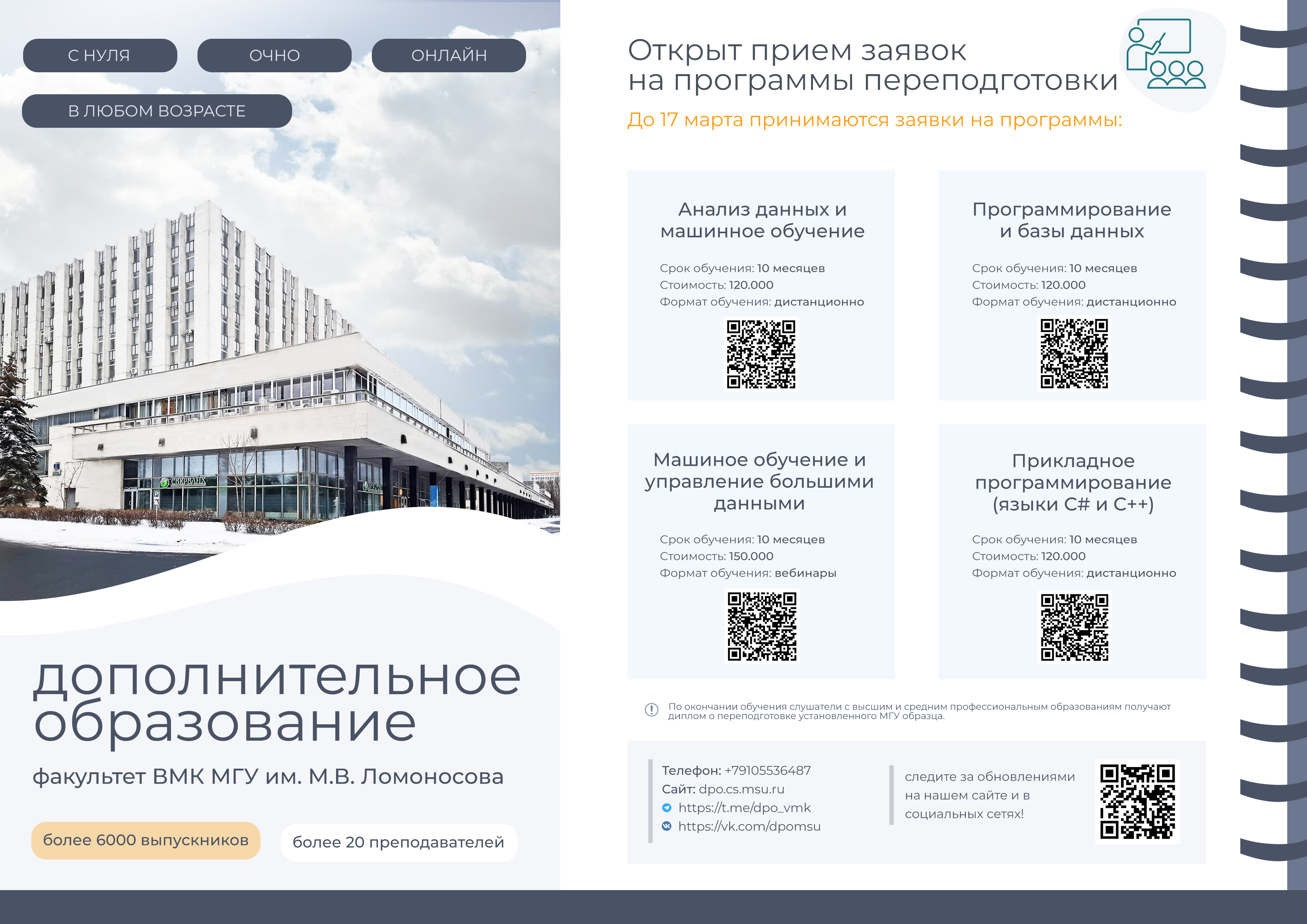 Принимаются заявки на программы профессиональной переподготовки (диплом МГУ):