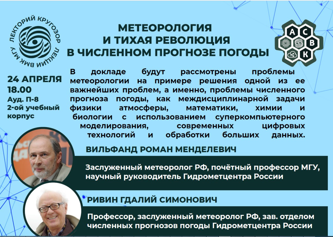 Факультет вычислительной математики и кибернетики МГУ имени М.В.Ломоносова приглашает на открытую лекцию, посвящённую современным подходам к численному прогнозу погоды.