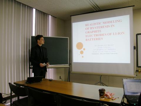 All these contributions were received with interest by other participants; several questions were asked and an interesting discussion followed. Particular interest was paid to the hysteresis modeling in porous electrodes carried out by Dmitry Maximov.