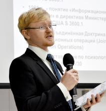 В 2016 г. защитил диссертацию на соискание ученой степени кандидата политических наук на тему «Политика безопасности США в глобальном информационном пространстве» в диссертационном совете Д 002.003.03 на базе Федерального государственного бюджетного учреждения науки Института мировой экономики и международных отношений имени Е.М. Примакова Российской академии наук (ИМЭМО РАН).